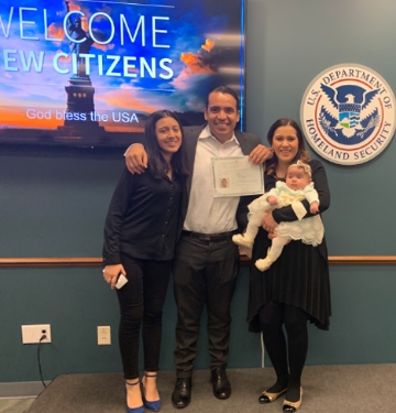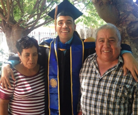 De izquierda a derecha: Osvaldo y su madre en la escuela primaria en Sacramento, Osvaldo y sus padres en su graduación de UCLA, Osvaldo con su esposa e hijos en su ceremonia de naturalización.