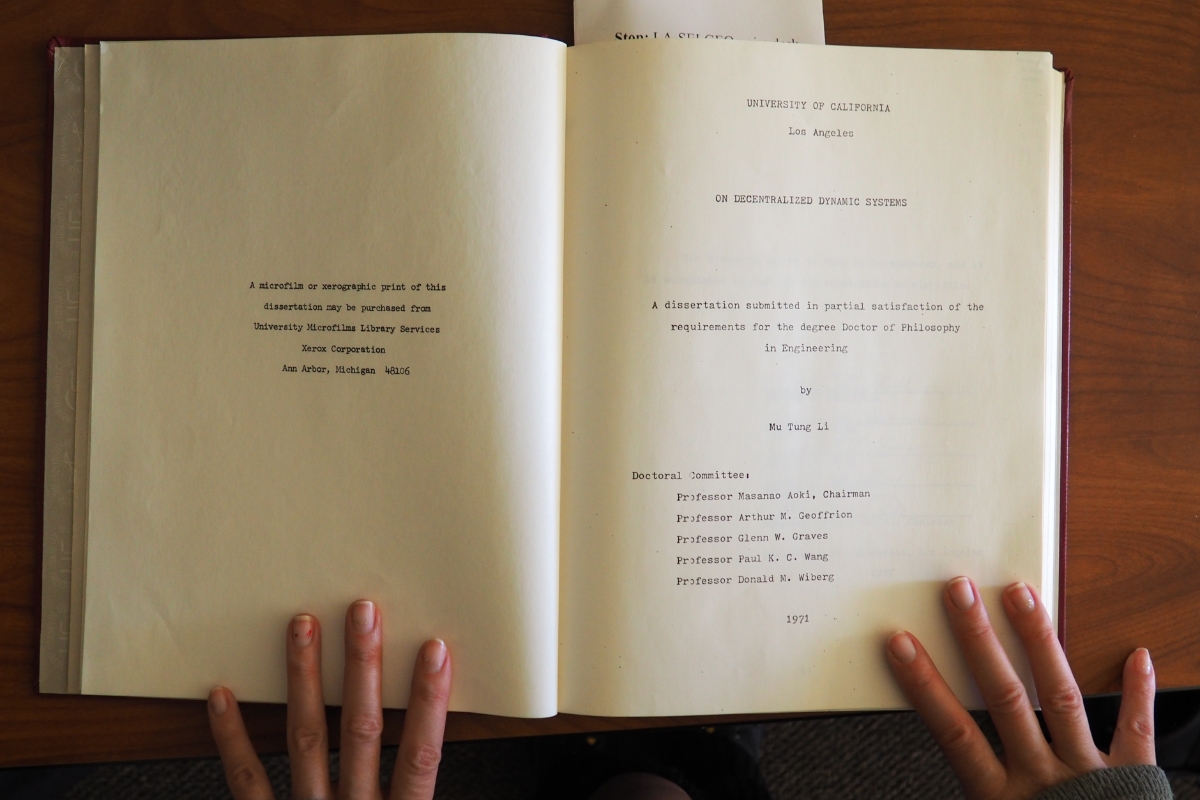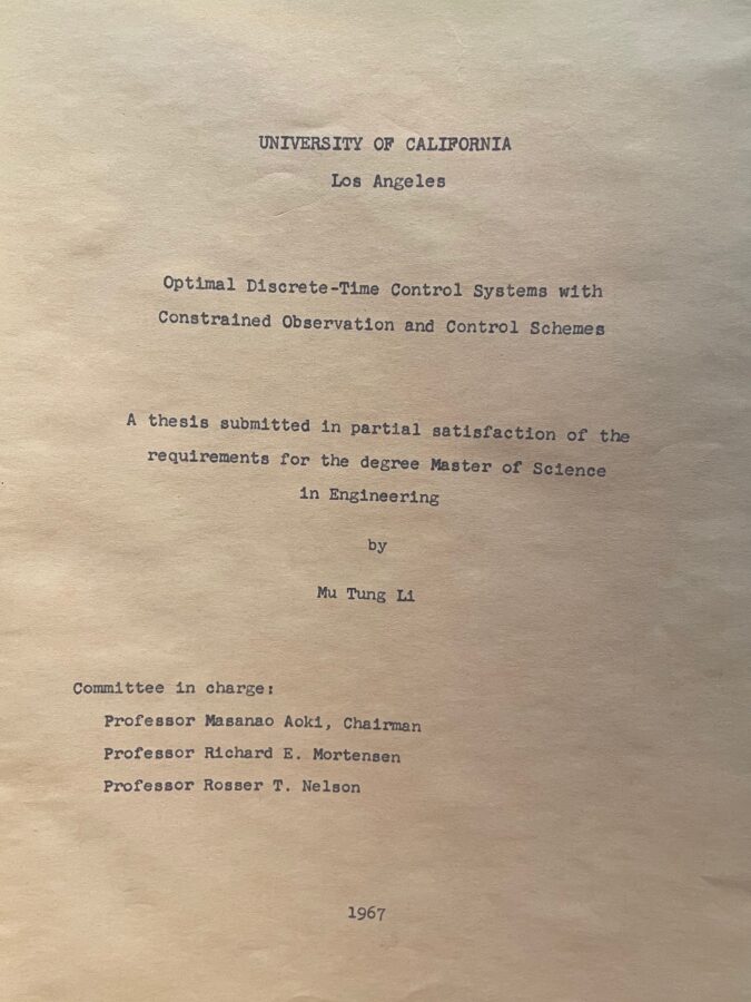 My grandparents immigrated from Taiwan to Los Angeles in the 1960’s for my grandfather to pursue a PhD in System Sciences at UCLA. While living in graduate student housing, they had my father and uncle, who would go on to become Bruins themselves. Despite being a young parent in a new country, my grandfather finished his Ph.D. In fact, his master’s thesis and Ph.D. dissertation are both still available in the UCLA library just a few steps from where I now work.